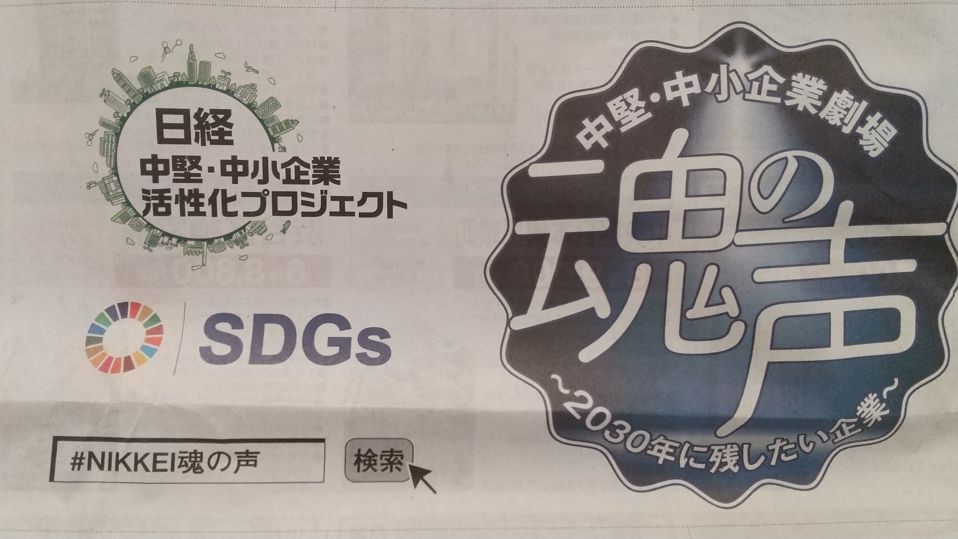 本日9月24日(木)の日本経済新聞朝刊「中堅・中小企業劇場 魂の声~2030年に残したい企業~」に弊社が掲載されました!