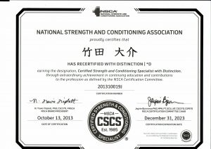 - 認定ストレングス&コンディショニングスペシャリスト 特別認定(CSCS ,*D)