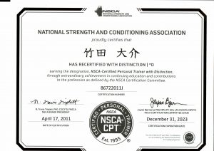 弊社所属パーソナルトレーナーは代表含め全員が「全米ストレングス&コンディショニング協会(NSCA)」の有資格者です。