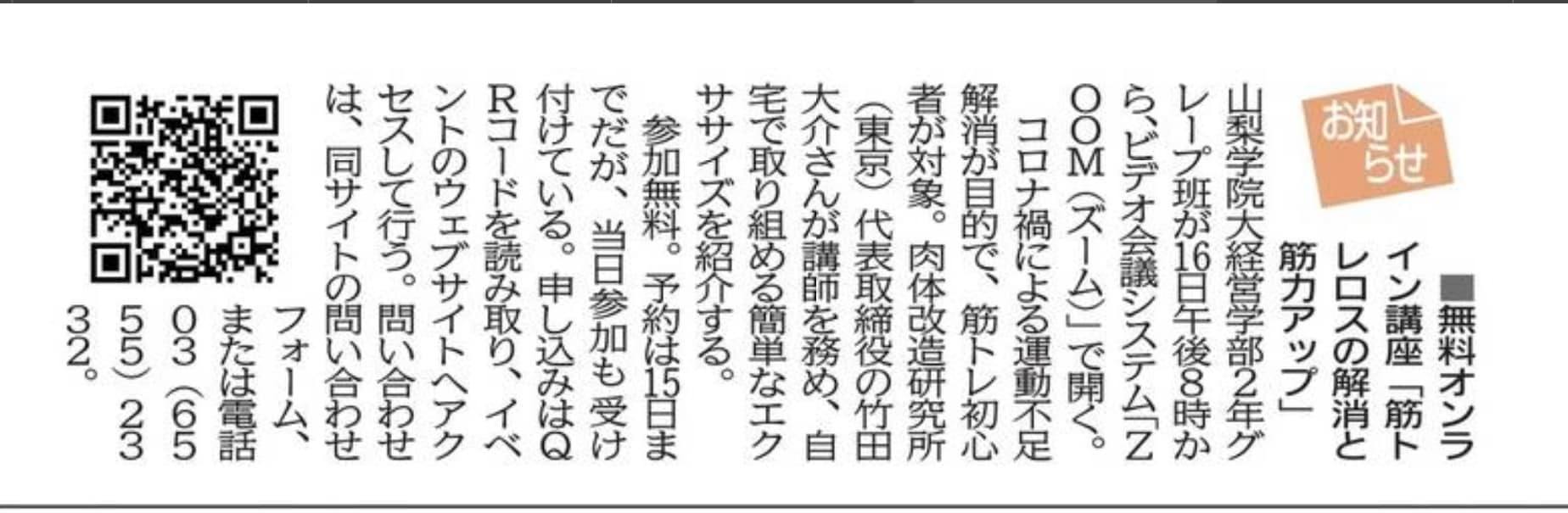 - 山梨日日新聞2021年12月11日日刊 お知らせ 掲載