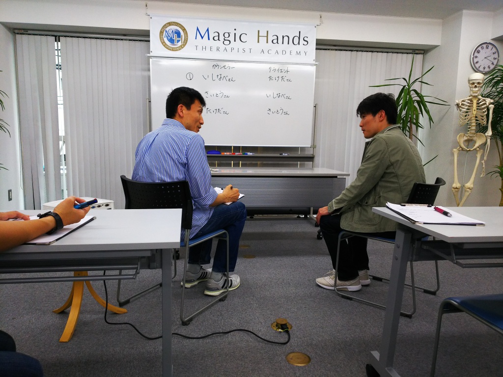 午前中に座学、午後はカウンセラー役とクライアント役の2人1組で徹底して実践形式+閲覧者と石堂先生によるフィードバック。