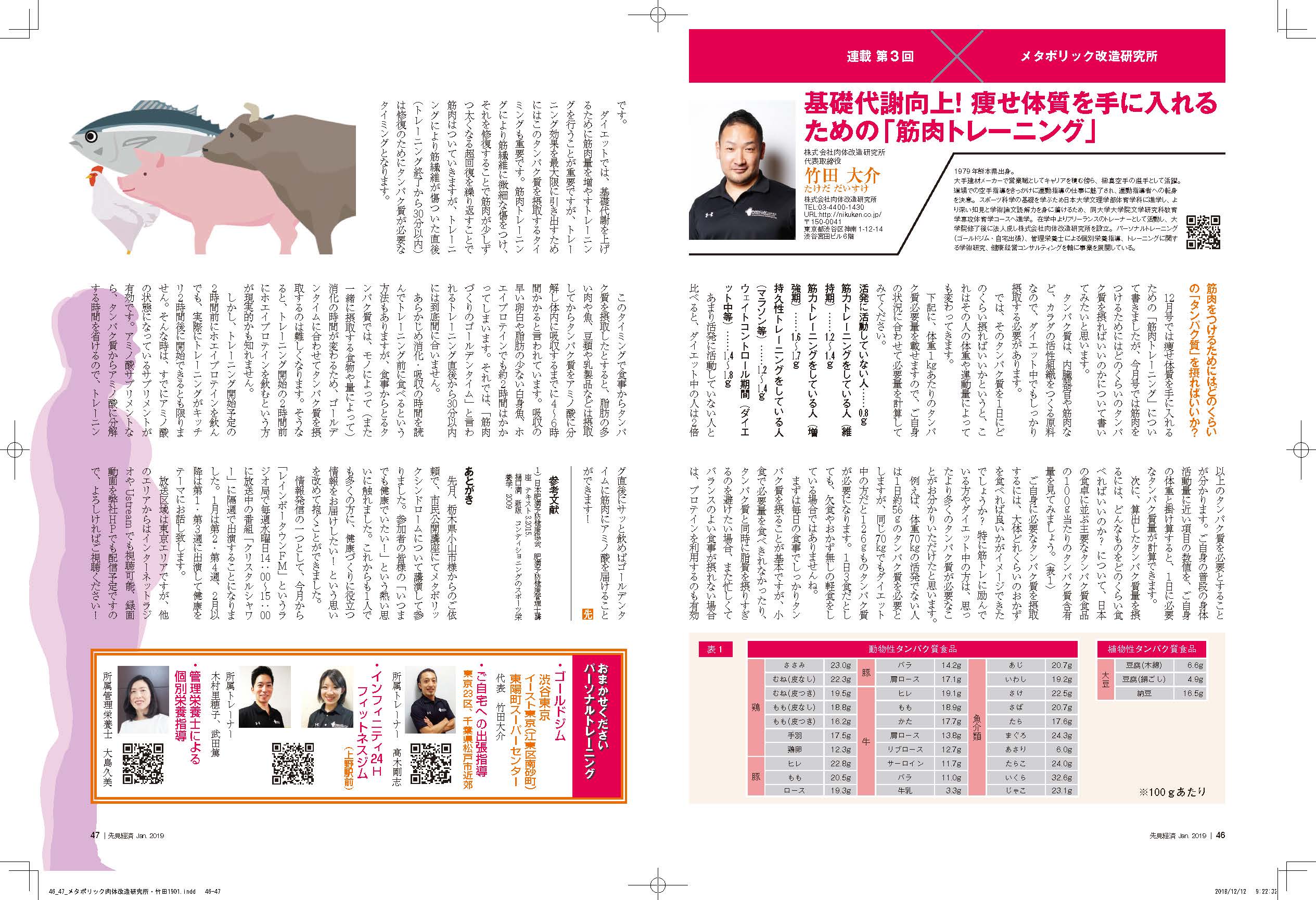先見経済1月号「筋肉をつけるためにはどのくらいの「タンパク質」を摂ればいいか?」