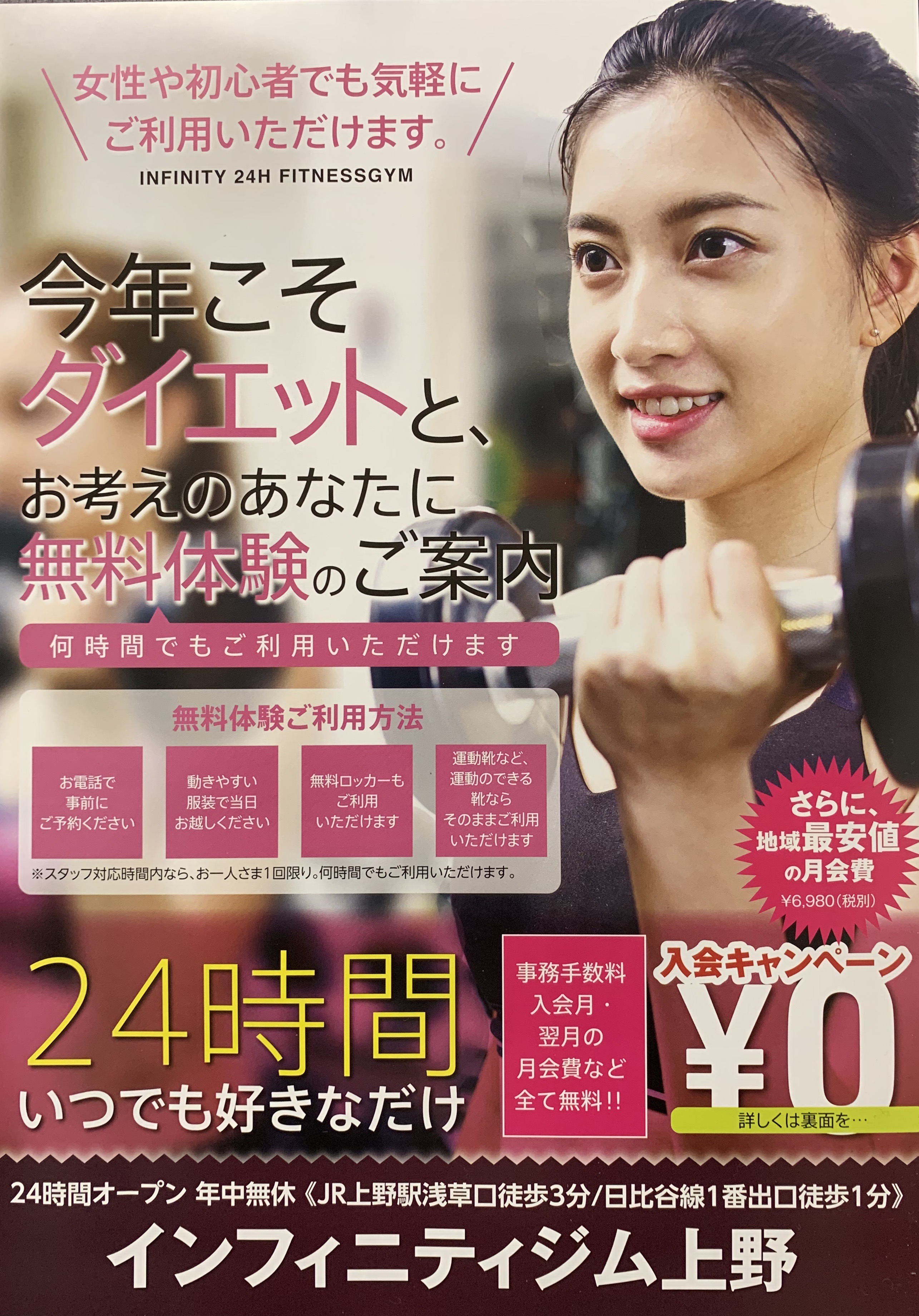 お正月太り解消キャンペーン インフィニティ24Hフィットネスジム(上野駅前)で実施中!