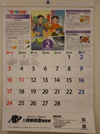 弊社のお客様に配らせて頂いておりますカレンダーには、毎月健康に関するテーマがあり、そのために摂取したい栄養素とおすすめ食材、レシピなどの情報が載っております。