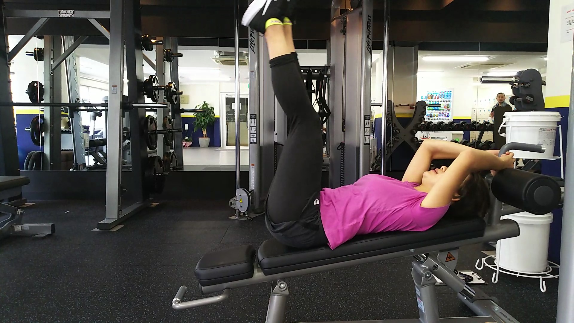 本日は東京・上野駅前のインフィニティ24Hフィットネスジムの設備を利用してのエクササイズとして、腹直筋と腸腰筋群を同時に鍛えて下腹部を引き締める、シットアップベンチを利用したレッグアップリフトをご紹介致します!