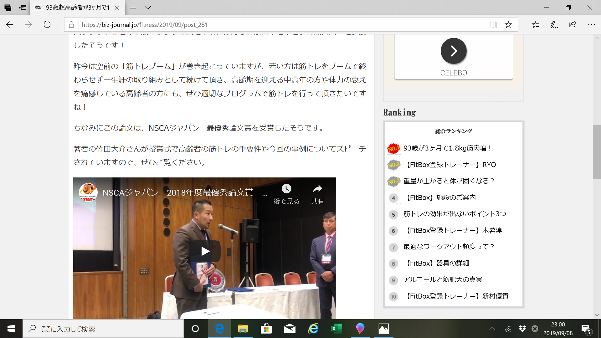 先日、筋トレ情報サイト「筋トレしようぜ!」さんに、私のパーソナルトレーニング指導事例(論文)及び最優秀論文賞受賞の模様が記事として掲載されました!