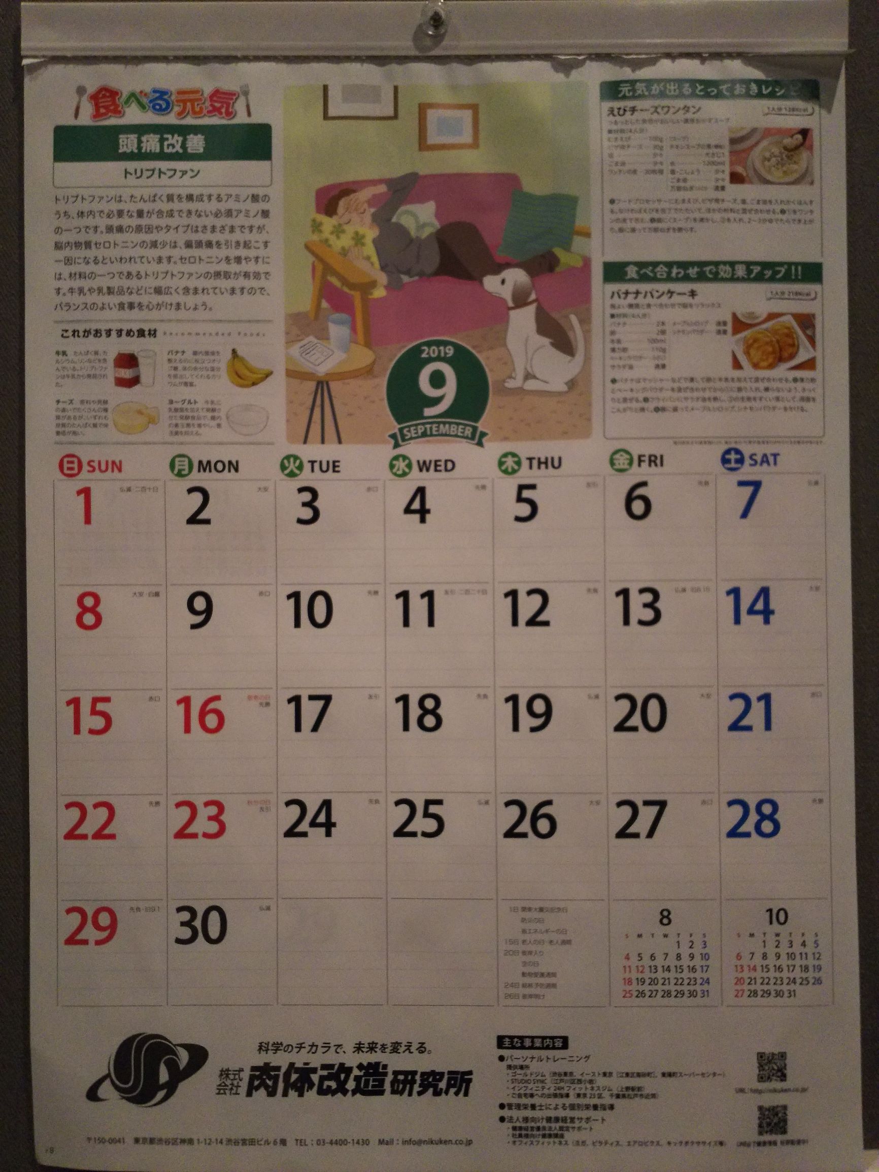 ニクケンカレンダー9月のテーマ「頭痛改善」