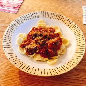 牛こま切れ肉のラグーソースパスタ 1人分710kcal