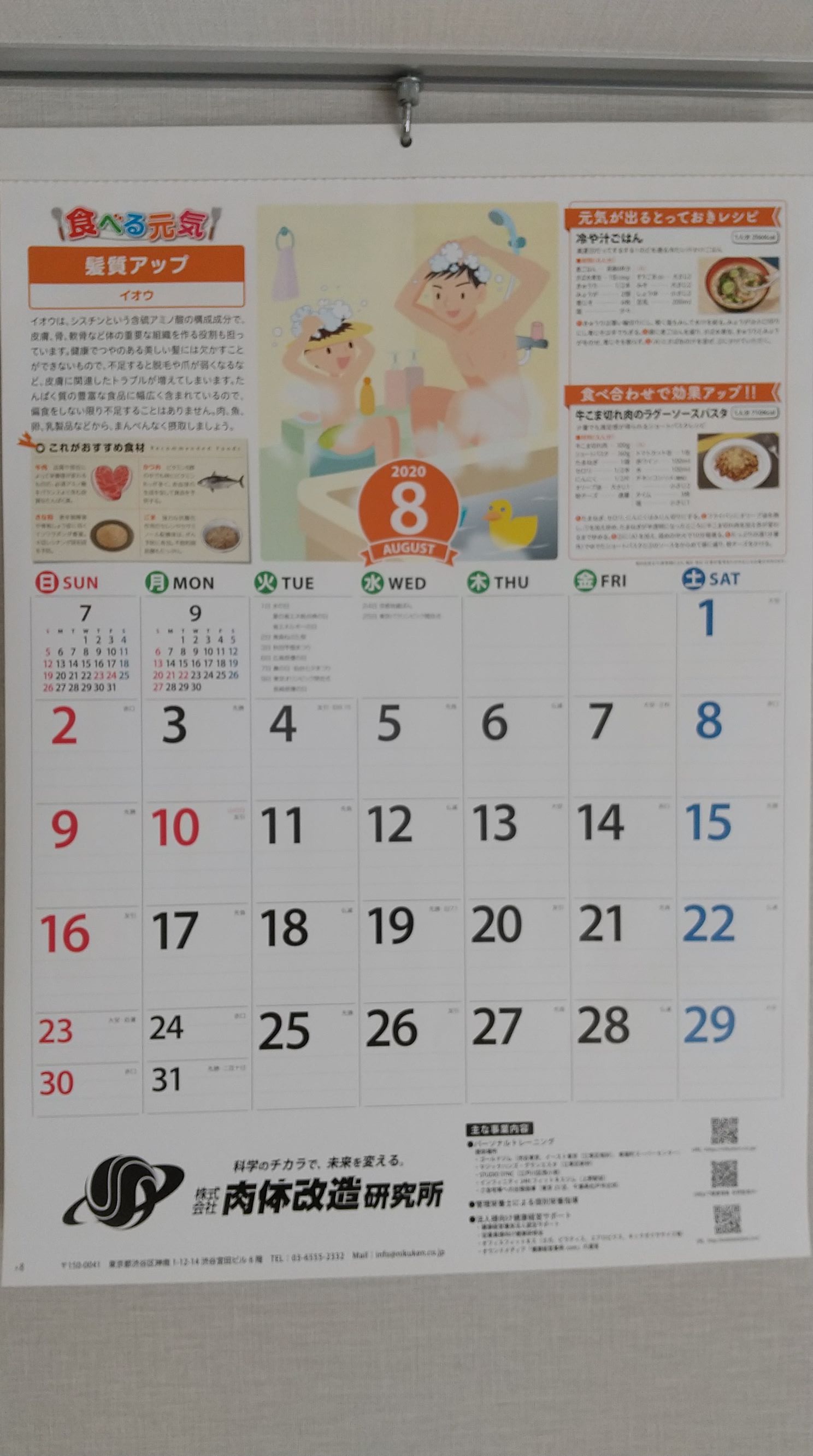 弊社のお客様に配らせて頂いておりますカレンダーには、毎月健康に関するテーマがあり、そのために摂取したい栄養素とおすすめ食材、レシピなどの情報が載っております。