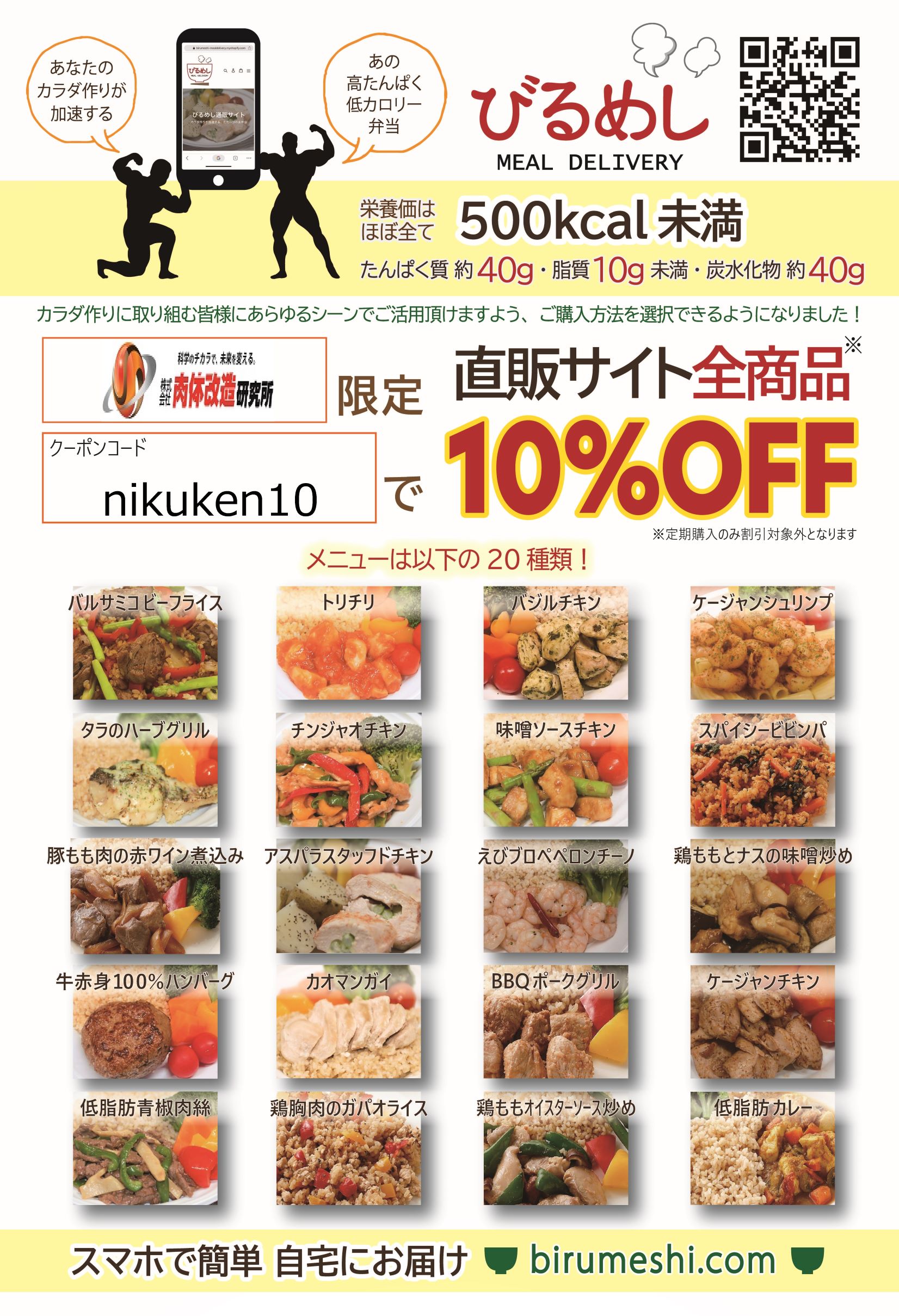 飲食店が20時閉店で晩御飯に困っている方に!高タンパク低脂肪筋肉弁当「びるめし」10%OFFでご購入頂けます!