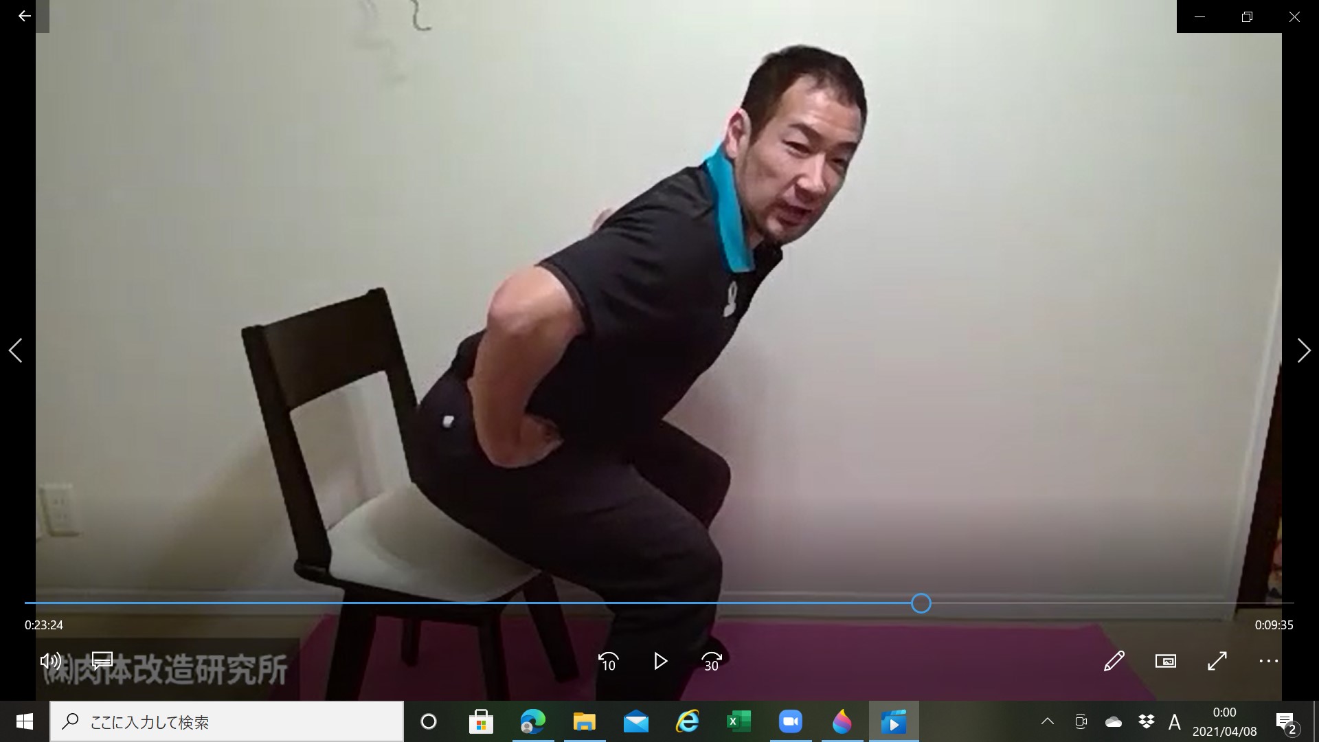 お尻を後ろに引いて股関節を使うフォームが難しい方に向けて、椅子の座り立ちスクワットも実施!