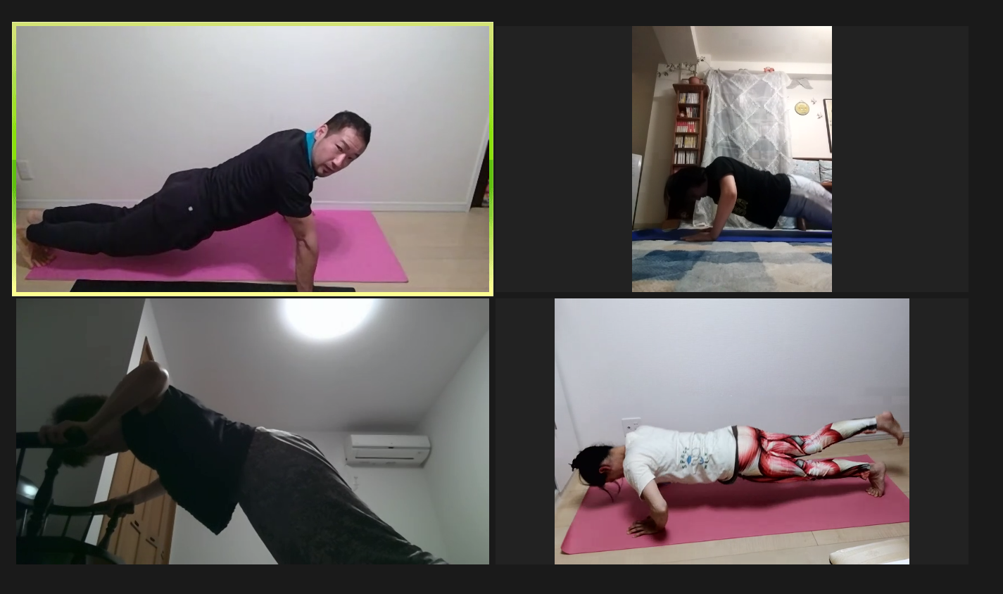 前回は、各自の筋力に合わせて負荷を調整したプッシュアップを行いました!