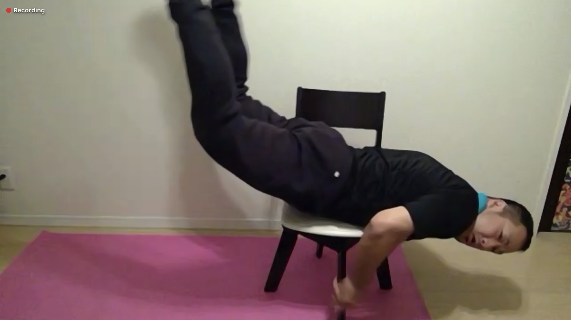 強度を上げたい方には、椅子を使って可動域を上げて強度を高めて頂きました!