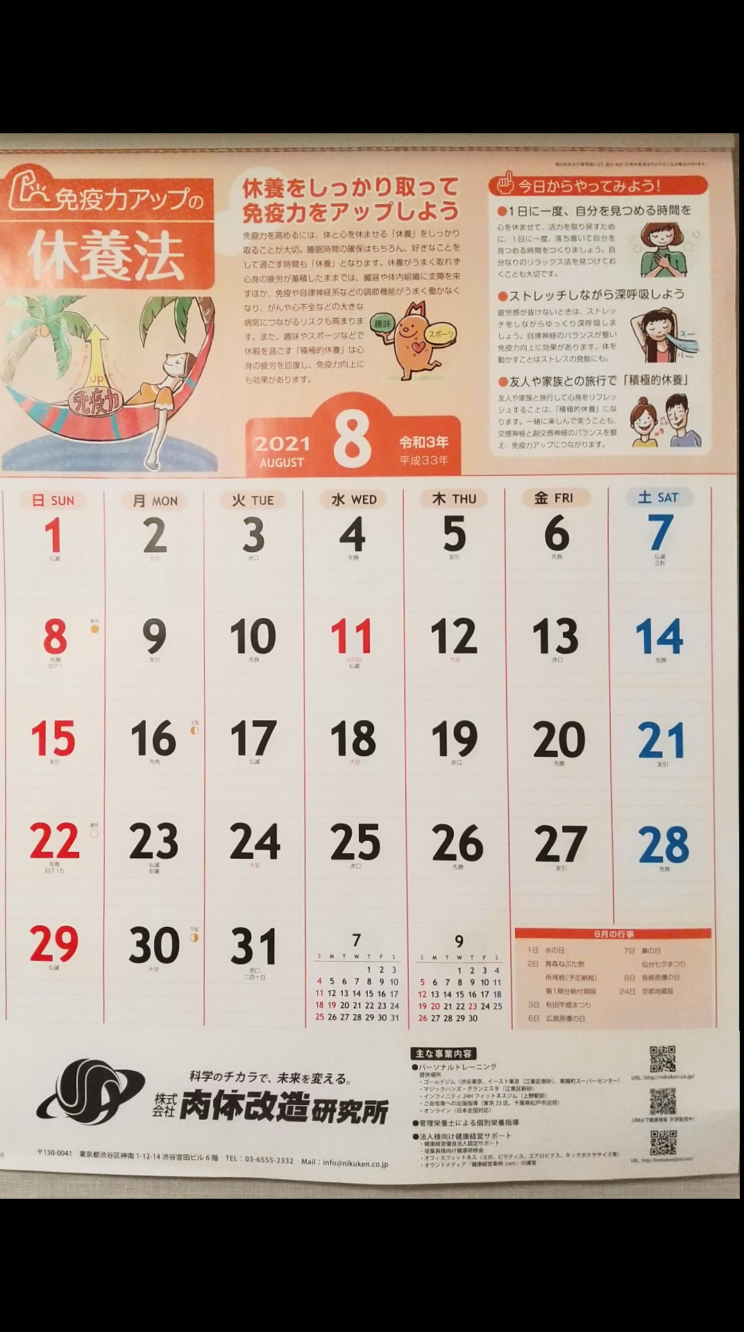 ニクケンカレンダー8月のテーマ「免疫力アップの休養法」