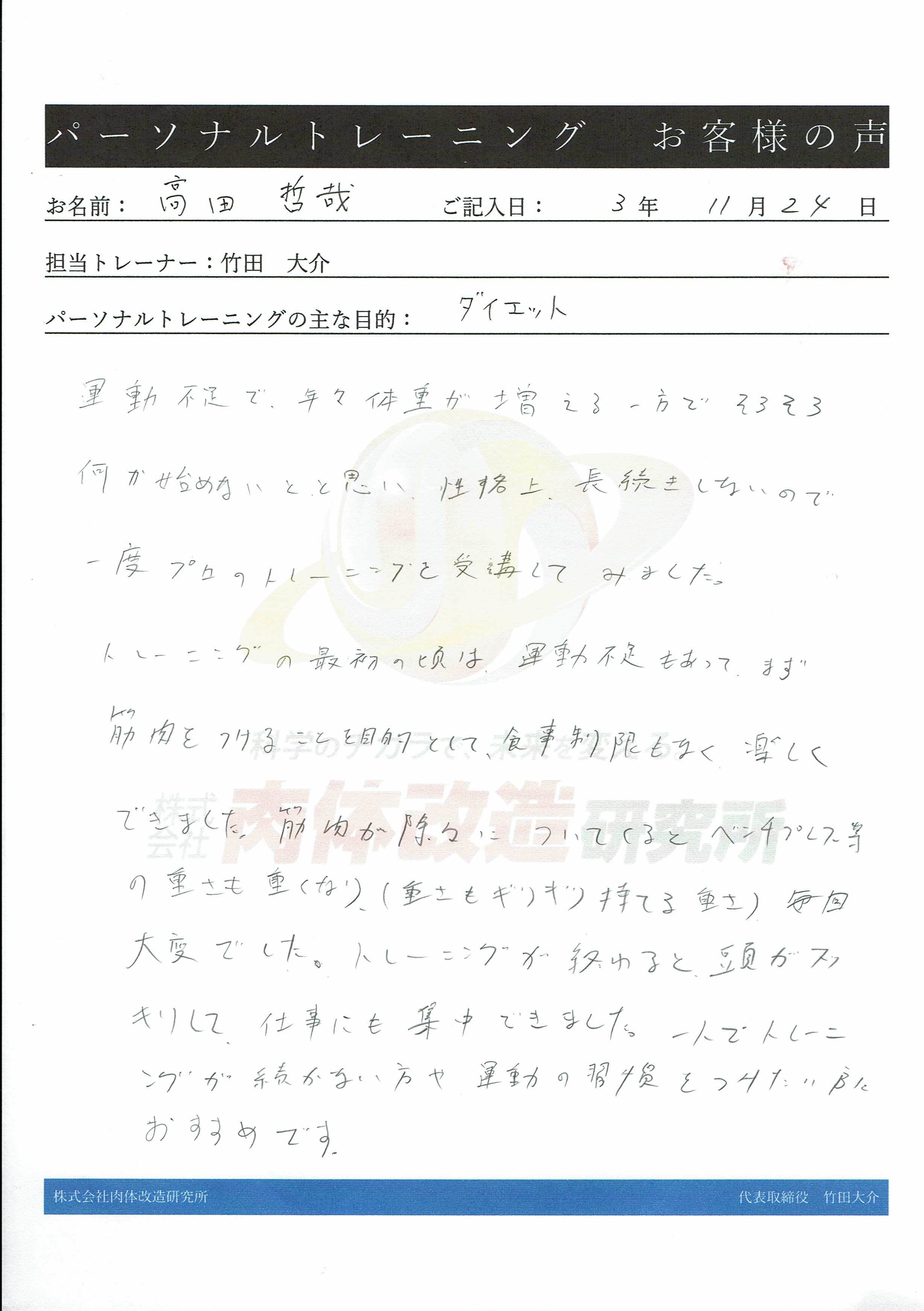 株式会社肉体改造研究所 代表取締役