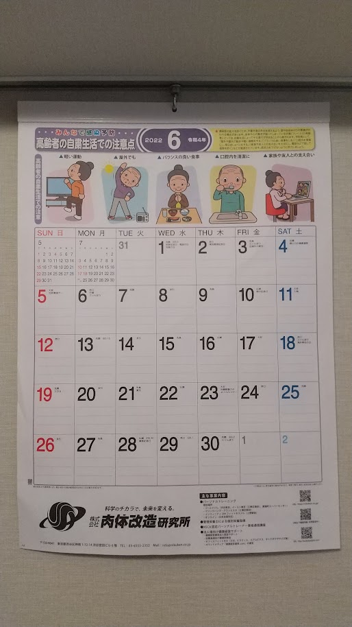 ニクケンカレンダー6月のテーマ「みんなで感染予防~高齢者の自粛生活での注意点~」