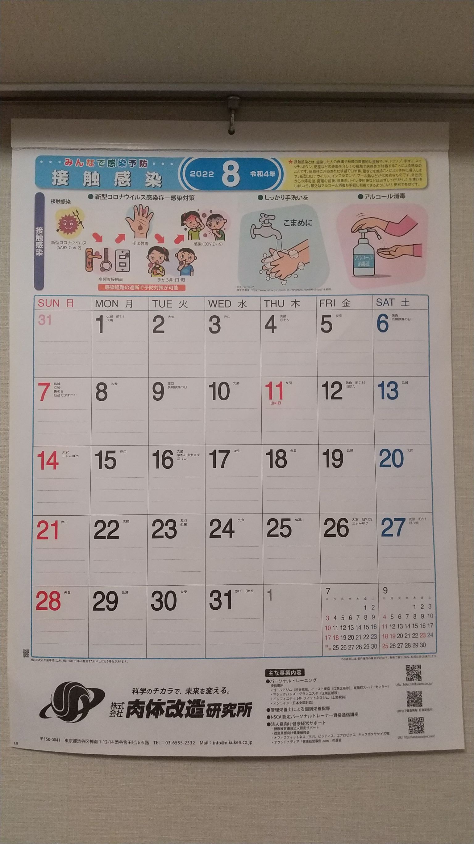 ニクケンカレンダー8月のテーマ「接触感染」