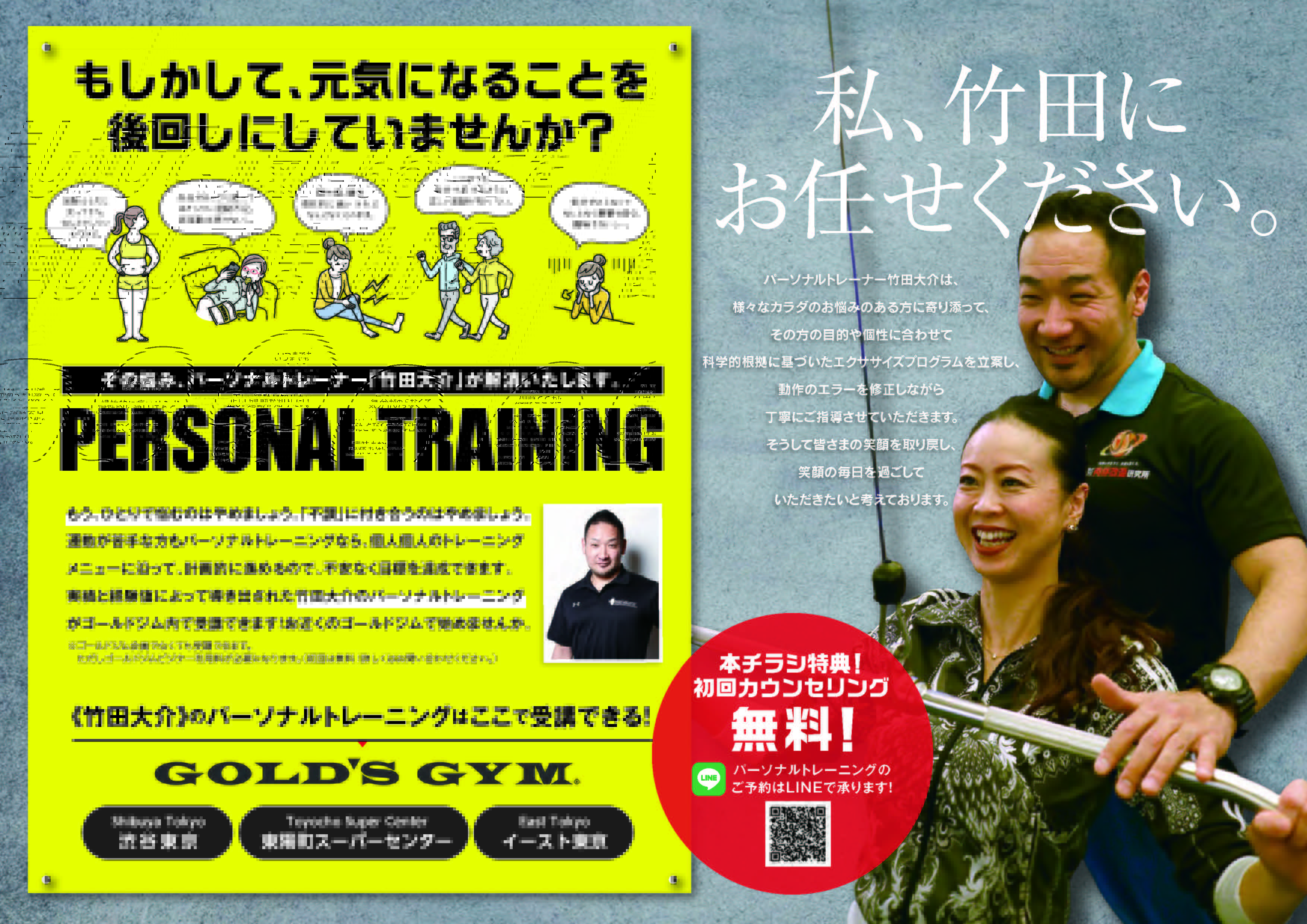 もしかして、元気になることを後回しにしていませんか?お身体の不調、パーソナルトレーニングで解消します!ゴールドジム渋谷東京・イースト東京(江東区南砂町)・東陽町スーパーセンター
