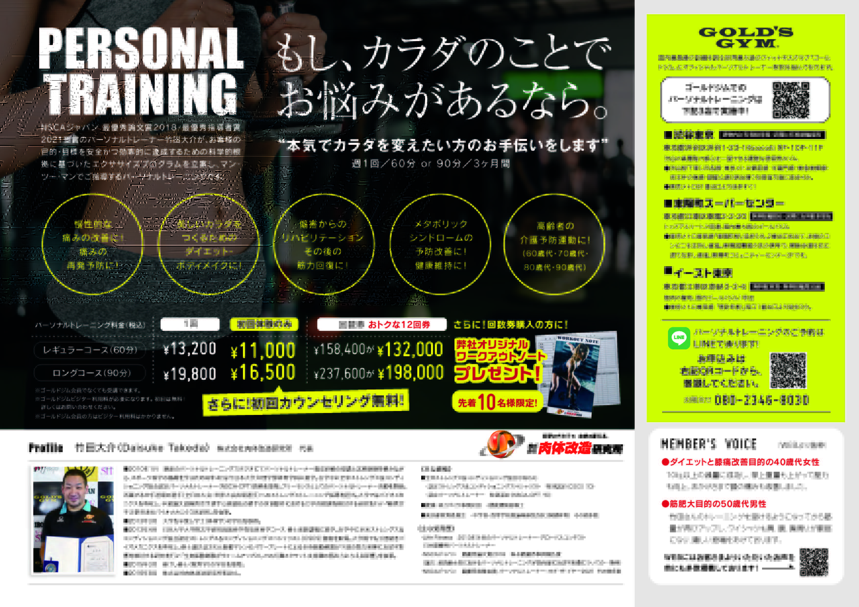 ゴールドジム公認パーソナルトレーナーとして、ゴールドジム東陽町スーパーセンター・イースト東京(江東区南砂)・渋谷東京・表参道東京の4店舗で活動中。