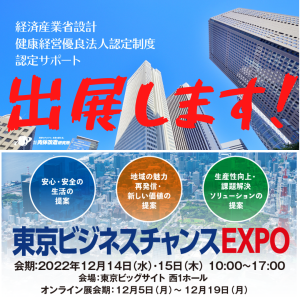 弊社で行っております健康経営サポート事業で、展示会「東京ビジネスチャンスEXPO」に出展致します!
