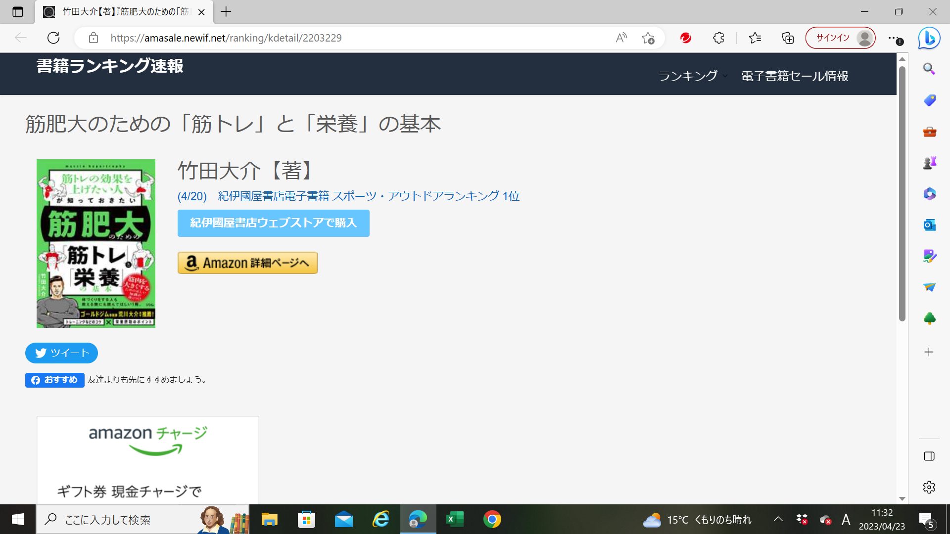 著書『筋トレの効果を上げたい人が知っておきたい 筋肥大のための「筋トレ」と「栄養」の基本』が、書店最大手 紀伊國屋書店様の「4/20 電子書籍 スポーツ・アウトドアランキング」で1位を獲得致しました!
