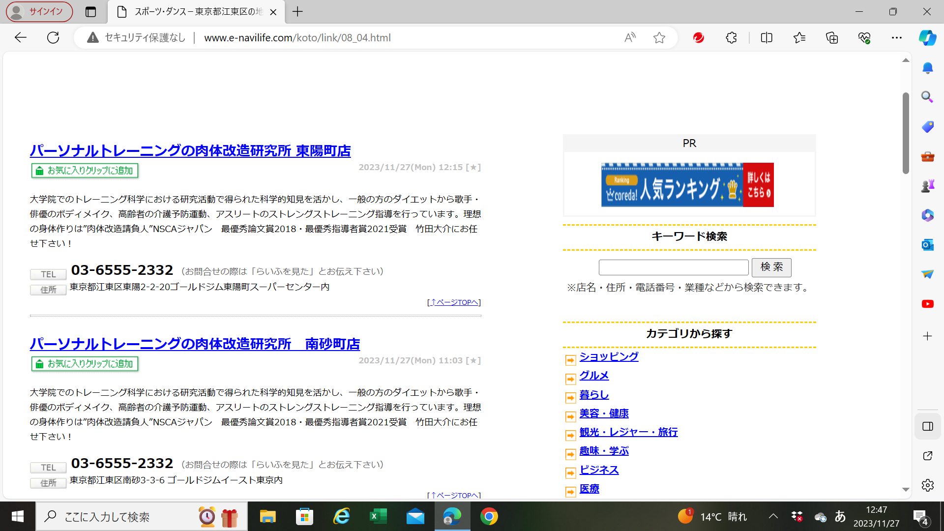 東京都江東区の地域情報サイト「らいふ 江東区版」に、私の活動拠点であるゴールドジム東陽町スーパーセンター・イースト東京(南砂町)でのパーソナルトレーニングが掲載されました!