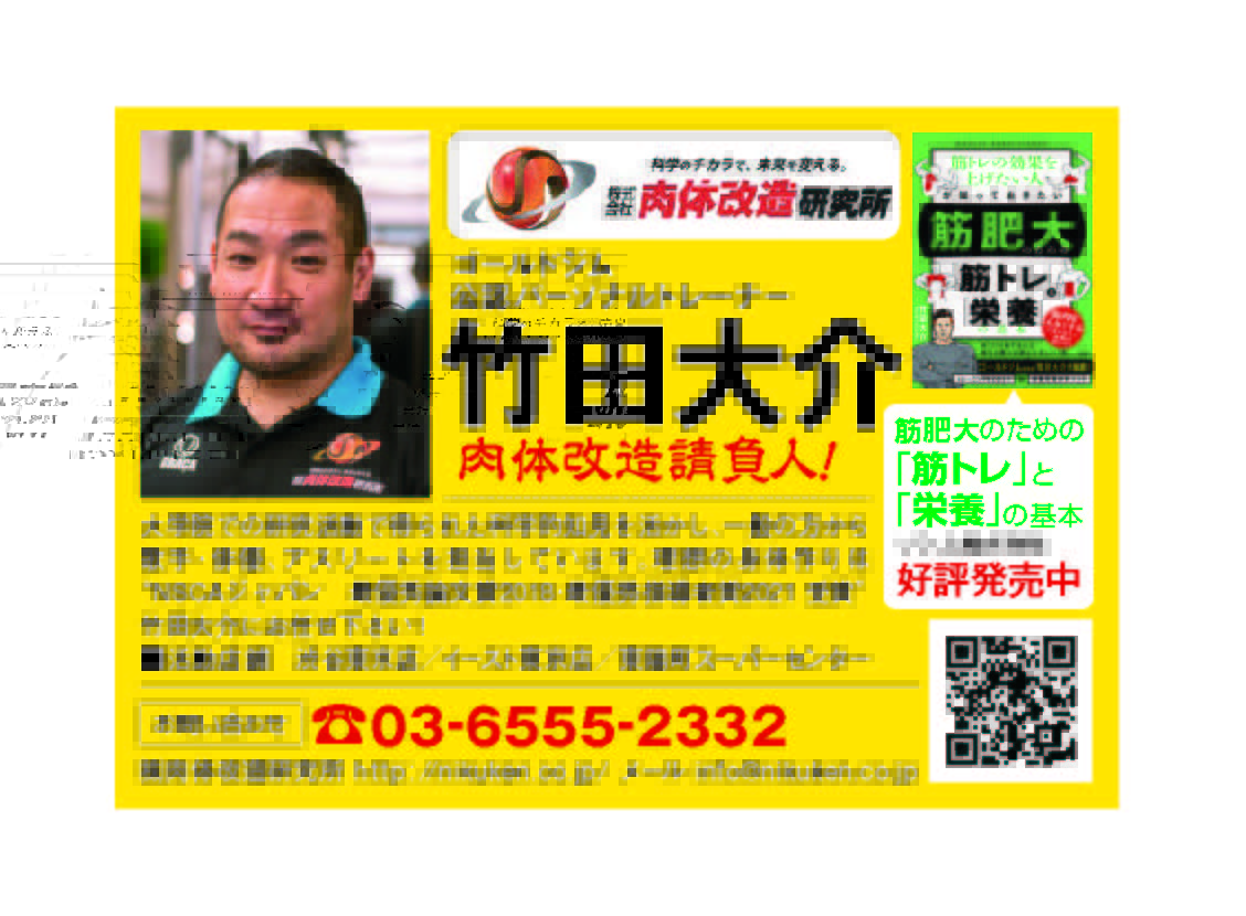 こんにちは!株式会社肉体改造研究所 代表の竹田大介です。