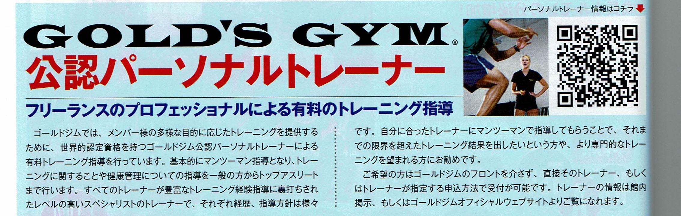 私の活動拠点であるゴールドジムの会報誌「GOLD’S GYMania vol.39」にて、今回もゴールドジム公認パーソナルトレーナーとしてご紹介頂きました!