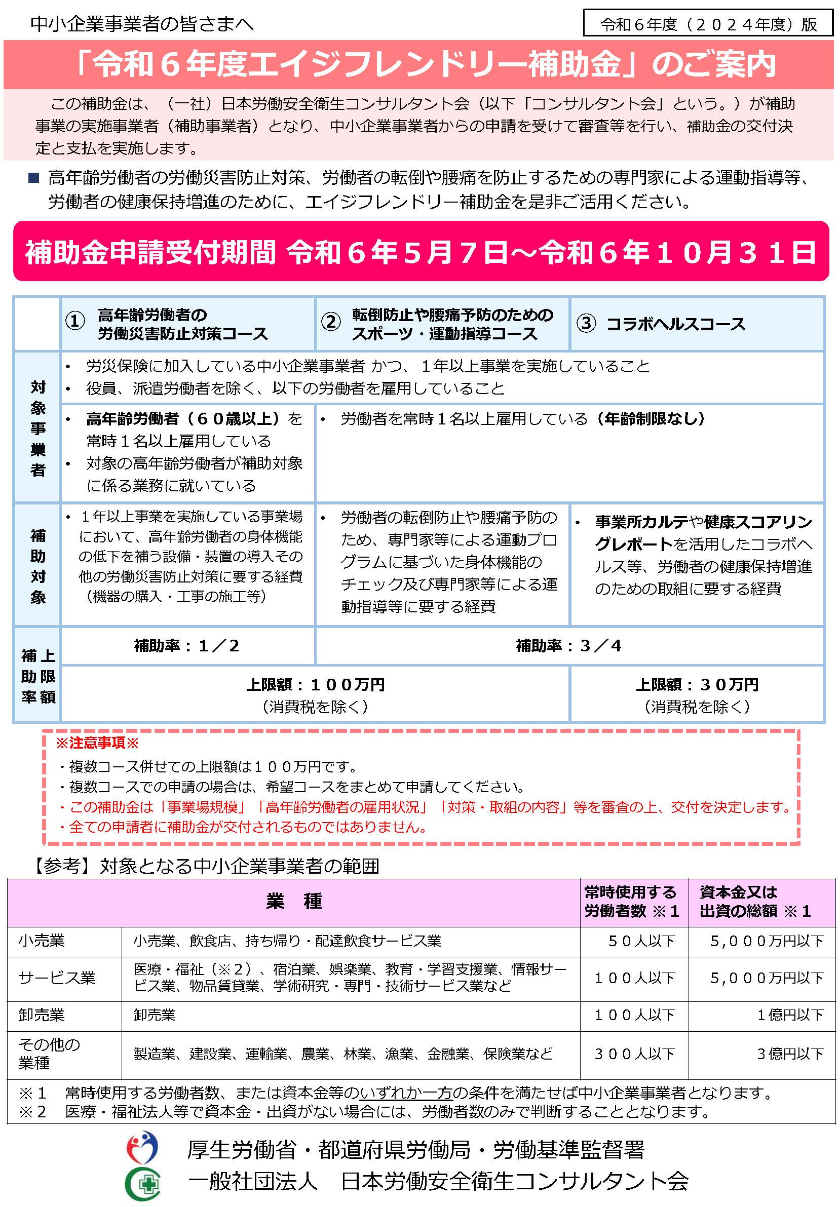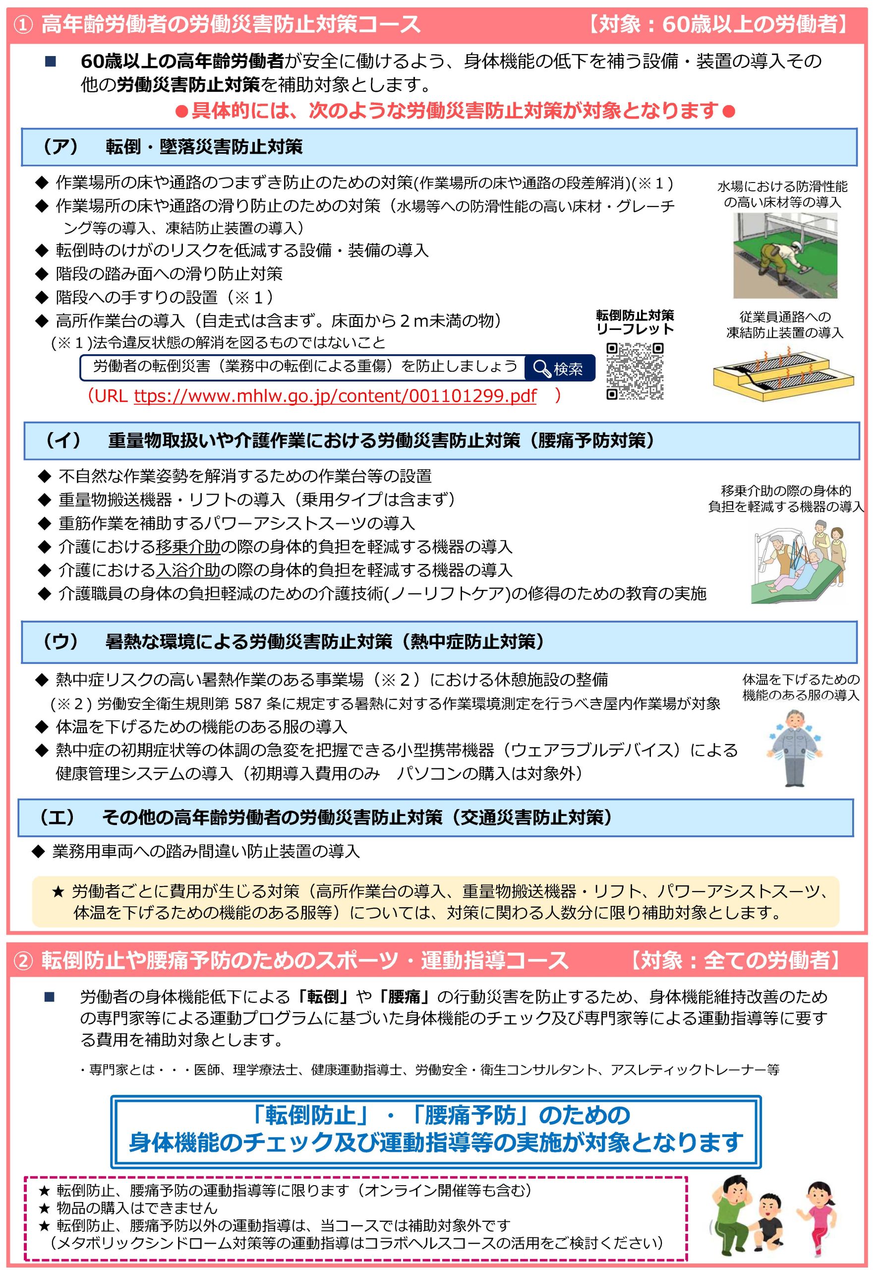 令和6年度『エイジフレンドリー補助金』の「転倒防止や腰痛予防のためのスポーツ・運動指導コース」「コラボヘルスコース(メタボリックシンドローム予防・改善のための運動指導)」がご活用頂けます。