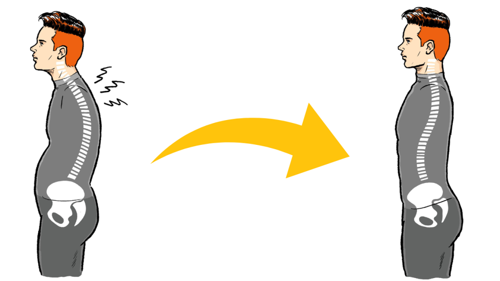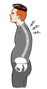 骨盤が後傾すると、肩甲骨が外転(猫背の姿勢)し、頭の位置が胴体の真上ではなく前に来てしまいます。
